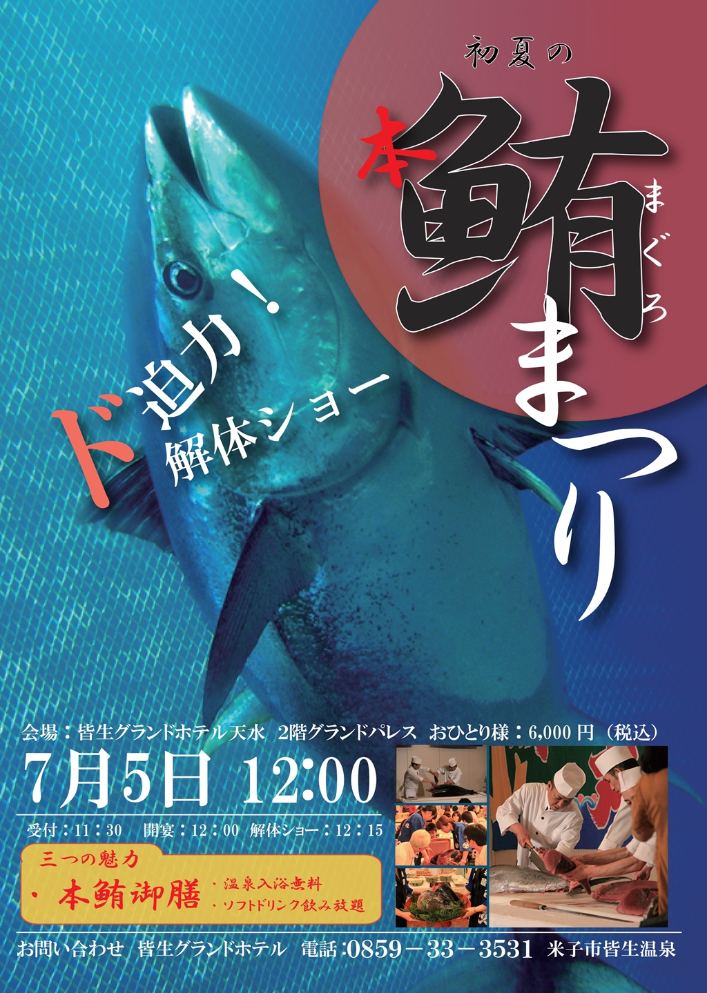 当館ホームページからのご宿泊予約時にオプションで「初夏の本まぐろ祭り 本鮪御膳(昼食)」をお選びいただけます。