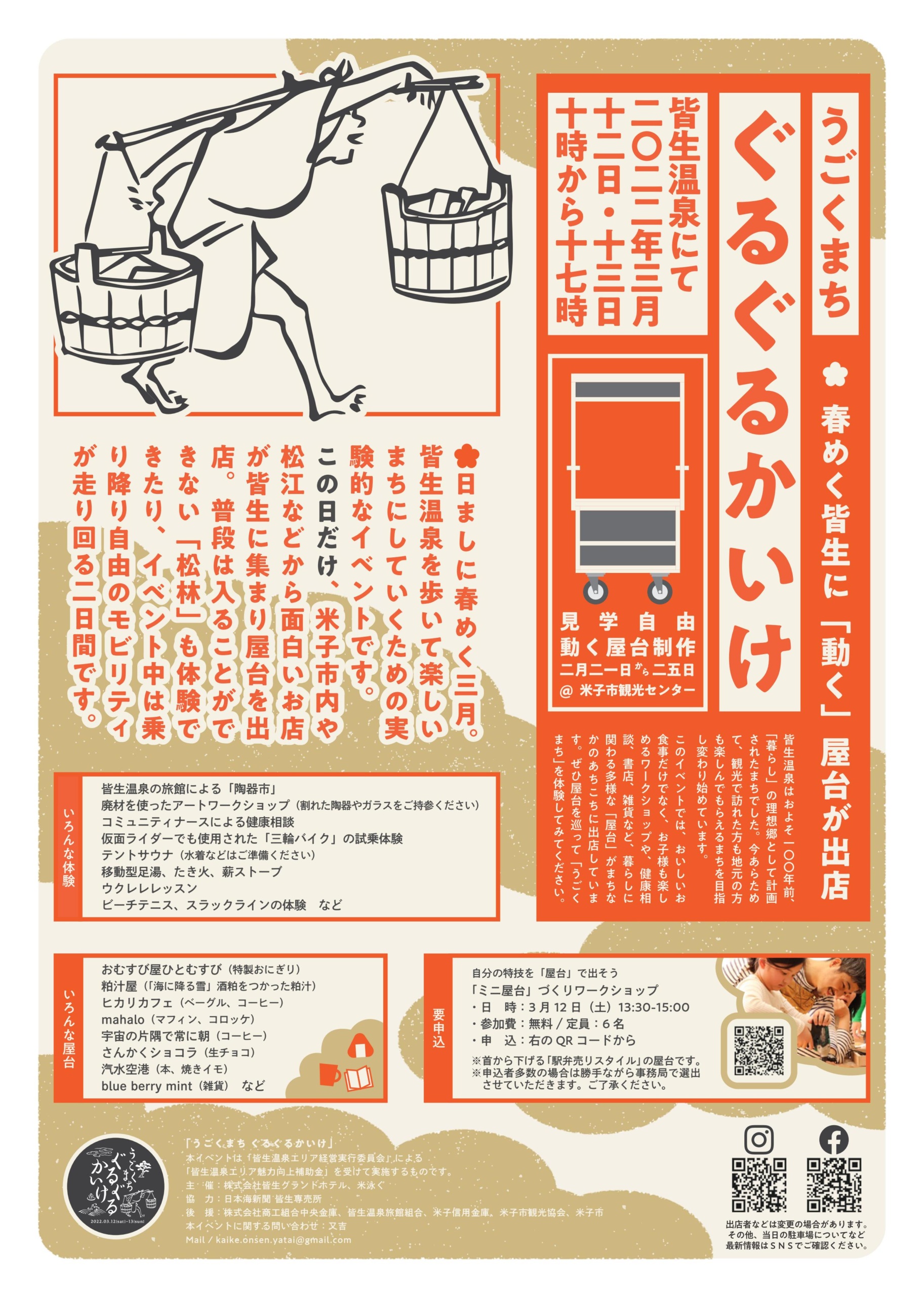 3月12日(土)、3月13日(日)の二日間、皆生温泉で『うごくまち ぐるぐるかいけ』が開催されます。(10時~17時)