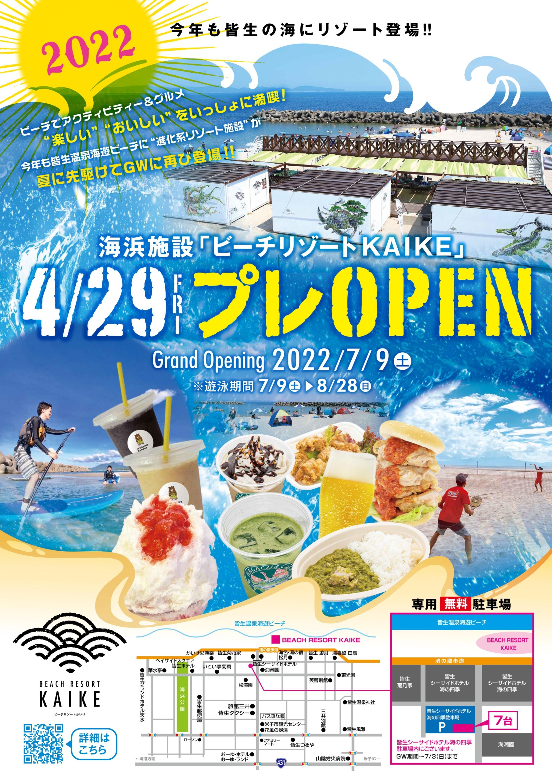 海浜施設「ビーチリゾートKAIKE」プレオープン!!|4/29(金・祝)~