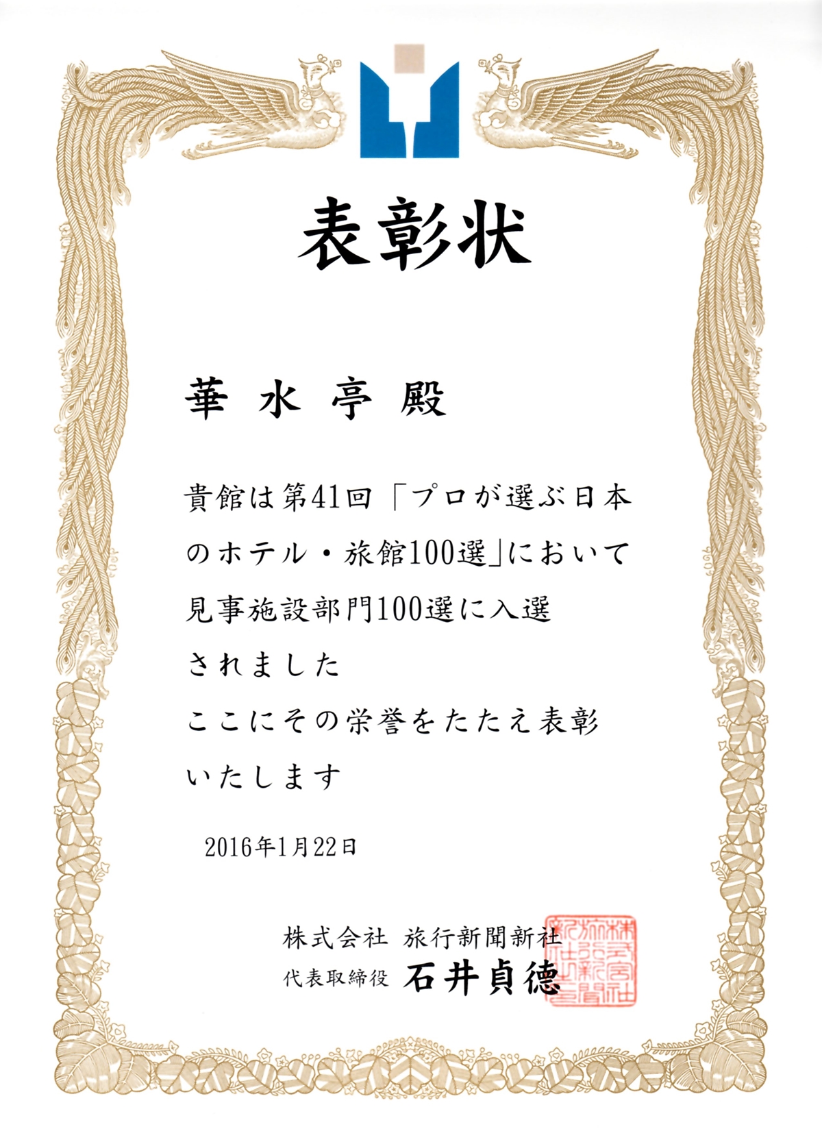 その中で『華水亭』は全国約42000の旅館の中から総合で35位に入選しました!!