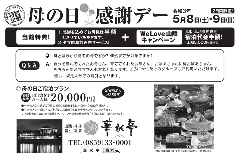 5/8(土)・9(日)の2日間限定☆母の日感謝デー♪