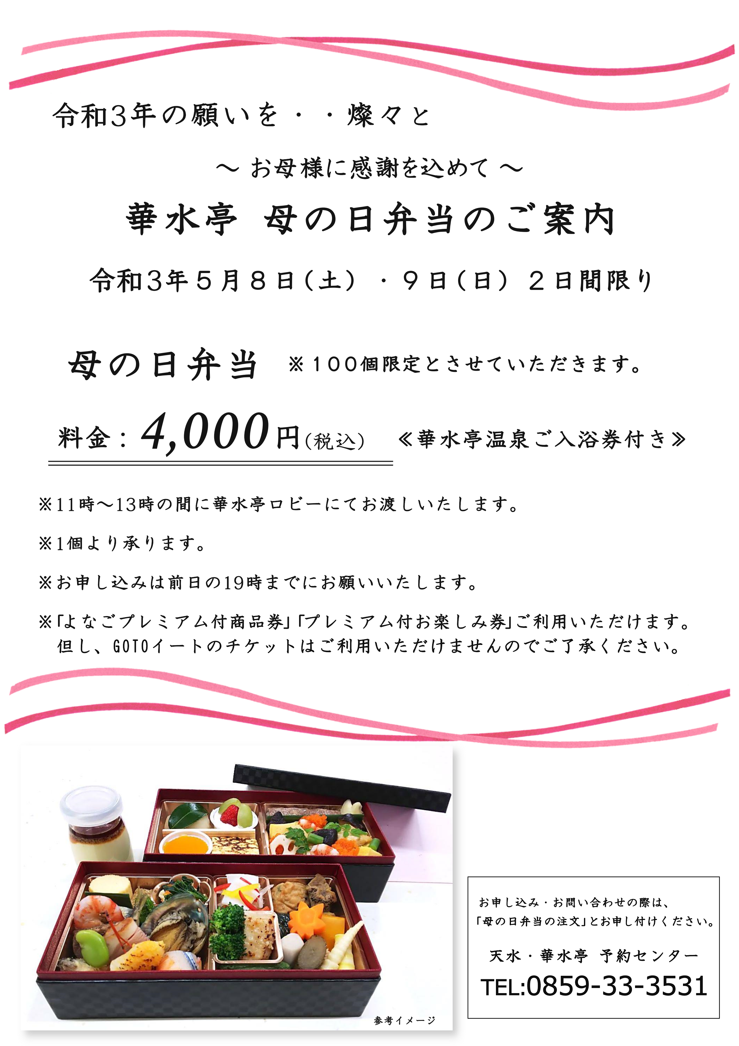 尚、同日は「母の日弁当」(テイクアウト)のご注文も承っております。