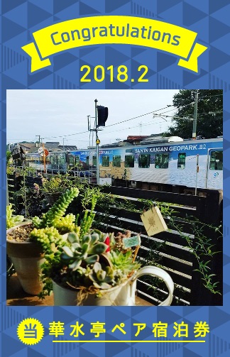 2月の優秀賞には、「華水亭」のペア宿泊券