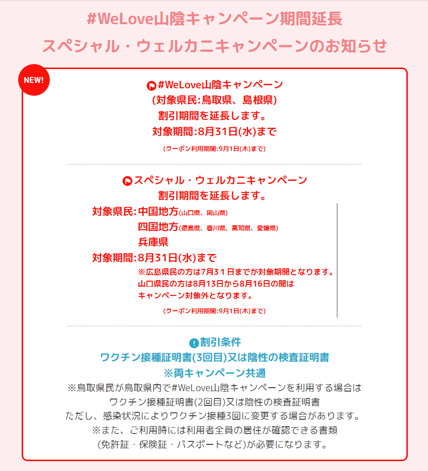 #WeLove山陰キャンペーン期間延長/スペシャル・ウェルカニキャンペーンのお知らせ