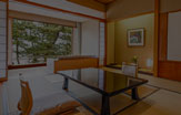 山側に位置する大部屋タイプの和室はグループや大家族のご利用に最適。上階のお部屋からは秀峰大山の情景を望むことができます。