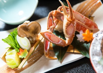 ぎっしりと詰まった身と上品な旨味が楽しめる鳥取を代表する冬の味覚です。ゆでガニ、焼き蟹の他、蟹の本場「境港」ならではの新鮮な刺身でも食べられ、とろっとした食感と独特の甘さが味わえます。カニを味わう様々なコースをお楽しみください。